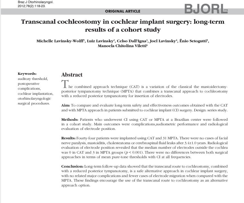 Cocleostomia transcanal em cirurgia de implante coclear