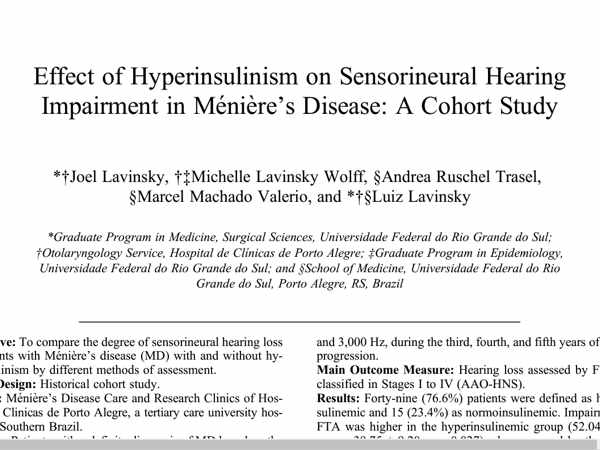 Efeito da hiperinsulinemia na deficiência de da audição neurossensorial na doença de Ménière um estudo coorte